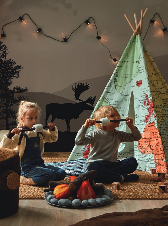 Little owns bring outdoorsy fun indoors with this set that lets them build their own play campfire and roast make-believe marshmallows.