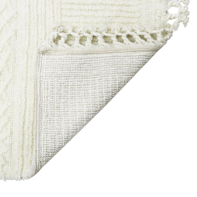 The Ari Sheep Woolable Rug by Lorena Canals brings together various tufting techniques to create a soft, multi-textured surface, combining vertical and horizontal lines with criss-cross lines that simulate braids, and playing with different pile heights. The Ari Sheep Woolable Rug by Lorena Canals is entirely Sheep White and finished at the edges with hand-twisted fringes.