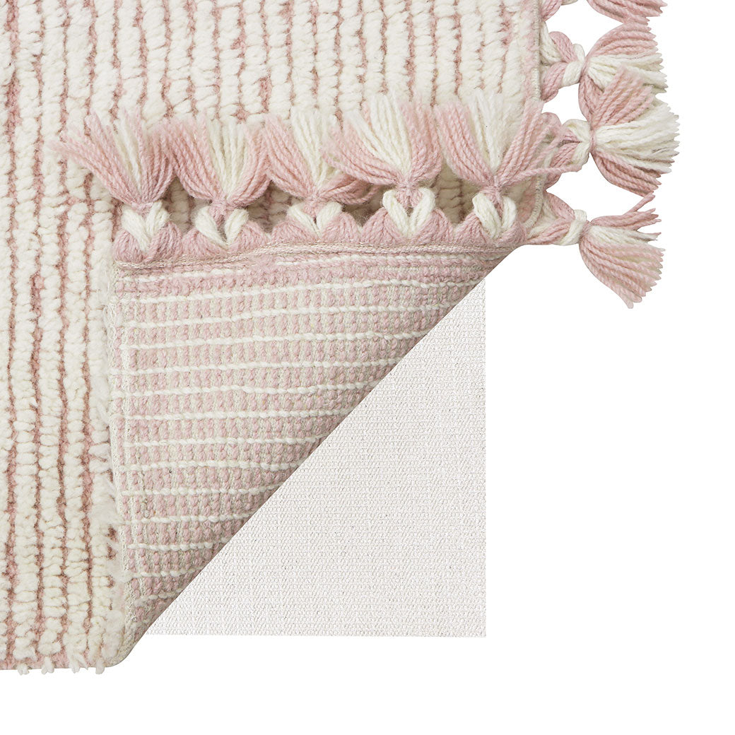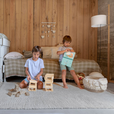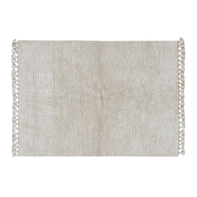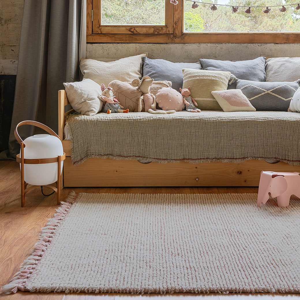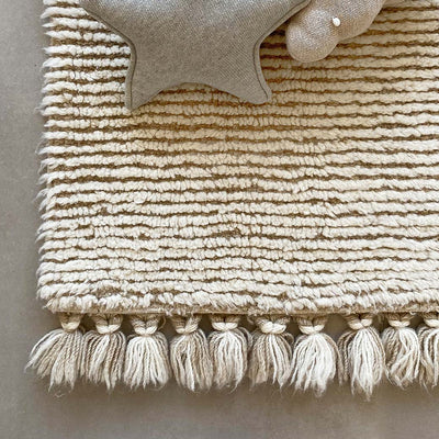 The Koa Woolable Rug by Lorena Canals plays with two different layers of wool, creating a subtle striped pattern. Both colors are mixed at the edges in carefully hand-braided tassels. It is a wonderful piece that brightens up the room and it is amazing for playtime! The Koa Woolable Rug by Lorena Canals is completely machine washable so your little one can play with ease!