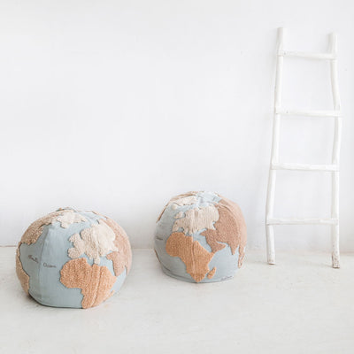 Inspired by the Lorena Canals Vintage Map rug, the World Map Pouffe by Lorena Canals comes as the perfect accessory to match it and is an essential addition to the Back to School collection. A soft earth globe for kids to explore the world while also serving as improvised seating at playtime. The World Map Pouffe by Lorena Canals is truly out of this world!