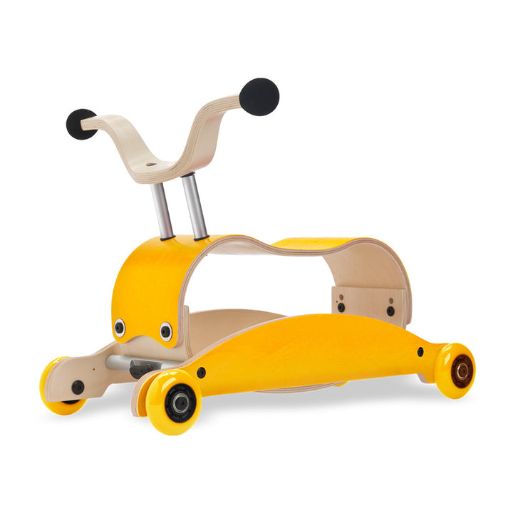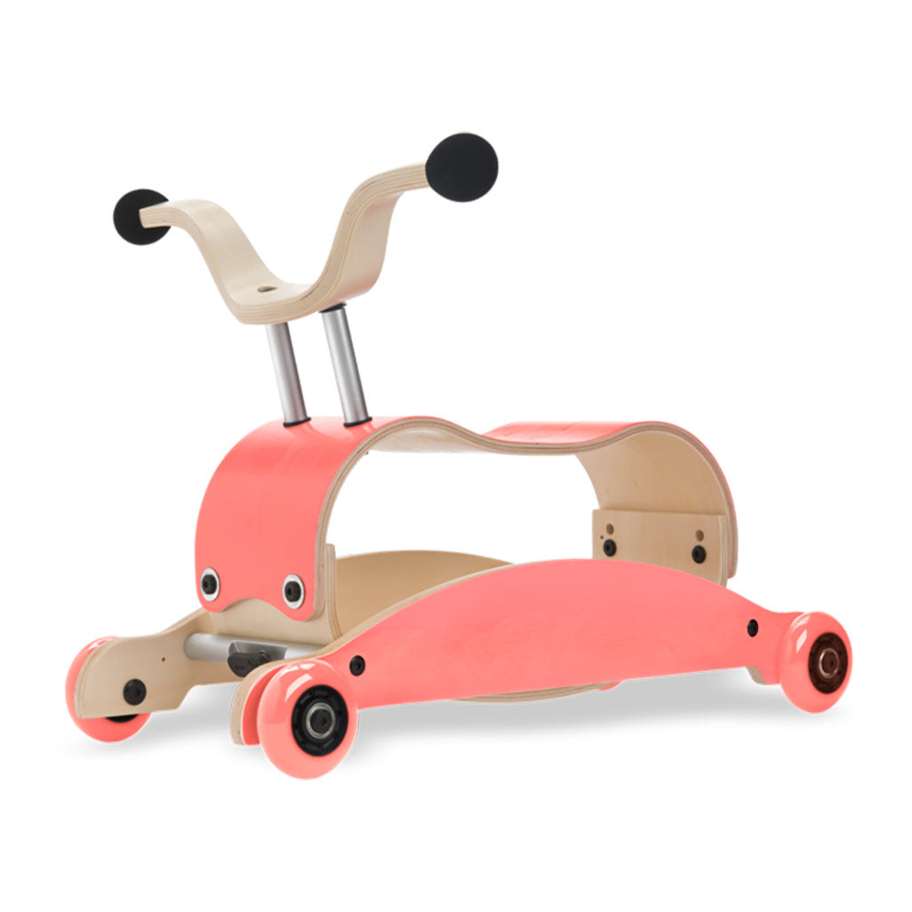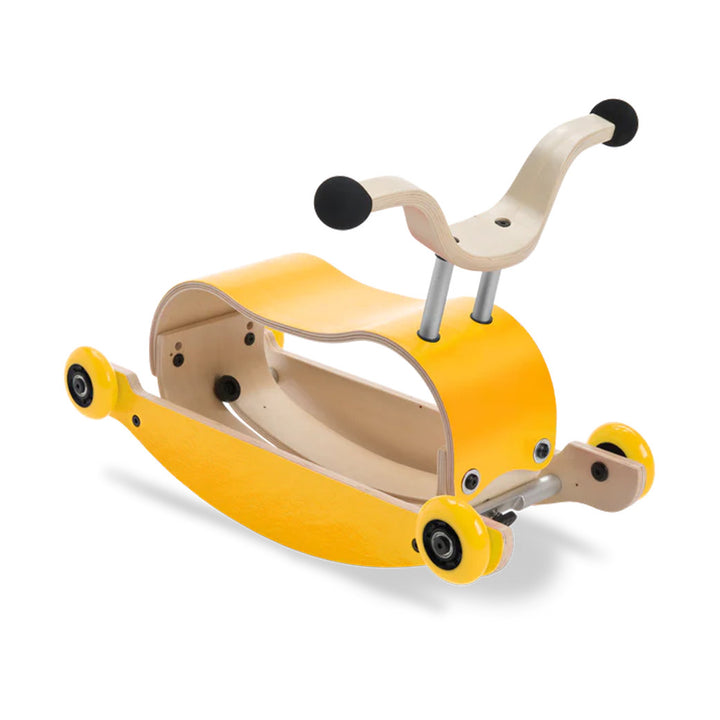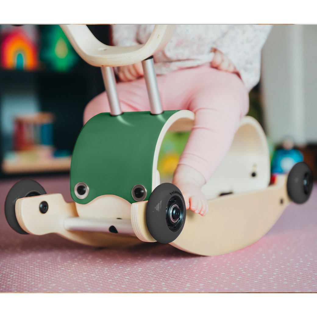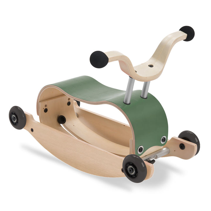 • Easily transforms from a ride-on toy to a rocking toy