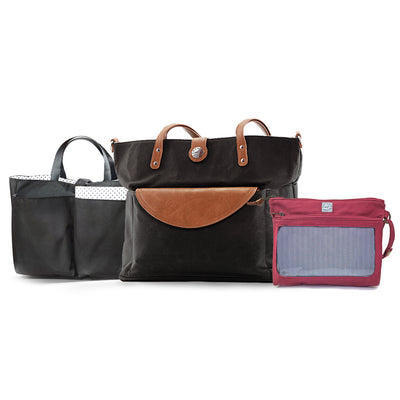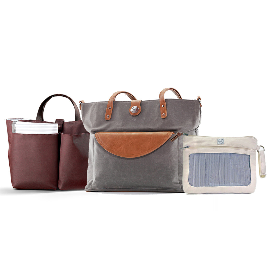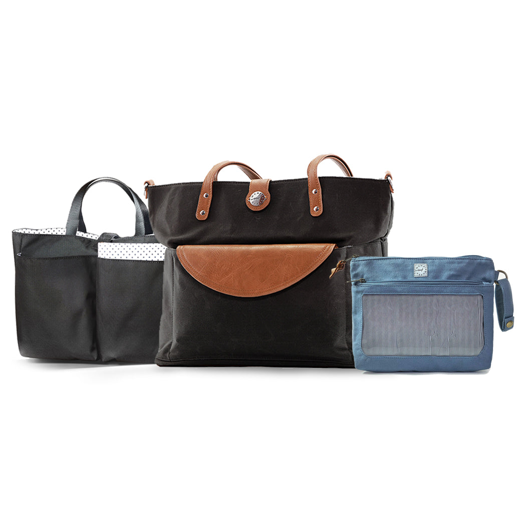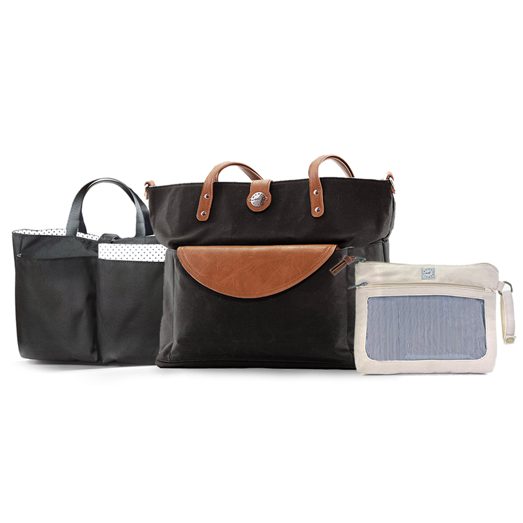 Just like its name says, the Momkindness CarryAll Tote TRIO is a multifunctional product that starts as a diaper bag and converts into a stylish everyday tote or a sleek clutch, extending its use way beyond your little one's diaper years. This tote really does carry it all! With the optional Pack-it-Up Pouch, which can be used as a wet bag, diaper pouch, travel case and many more, this tote is everything you will ever need in a diaper bag!
