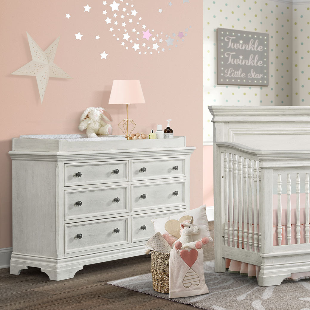 The Olivia Changer Top by Westwood Design transforms the Olivia Dresser into a functional changing station when paired with a diaper-changing pad.* It was created with safety and functionality in mind and has an additional storage area for all your diaper needs. The Westwood Design Olivia Changer Top is an amazing addition to your nursery that you can also use as an organizer around the house once your little one outgrows their diaper stage!