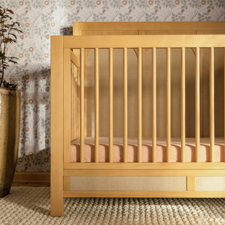 With its timeless silhouette and heirloom-quality fabric, Namesake's Eloise 4-in-1 Convertible Crib has a place in any nursery – traditional, modern, or eclectic. The fabric detailing adds depth, character, and a touch of nature-inspired charm to each piece. Its versatility ensures that it will seamlessly transition from a crib to a sophisticated full-sized bed for any bedroom in the house.