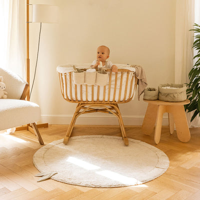 With its natural, ivory, and olive colors, the Lorena Canals Bamboo Leaf Washable Rug will bring a peaceful touch to your nursery. The removable bamboo leaves, which contain crinkle paper and are made of GOTS-certified cotton, are perfect for sensory play! The rug is made out of natural cotton and rayon from bamboo and it is soft to the touch, as well as suitable for machine wash.