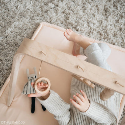 The NAHO arch with its wooden toys is ideal for stimulating the child from an early age. The wooden toys in different shapes to hang up will keep them awake and entertained. The NAHO arch’s sober and uncluttered design allows it to fit perfectly into your home. The NAHO arch will be perfectly installed on our TAMI play mat to create a beautiful effect. Made of Beech.