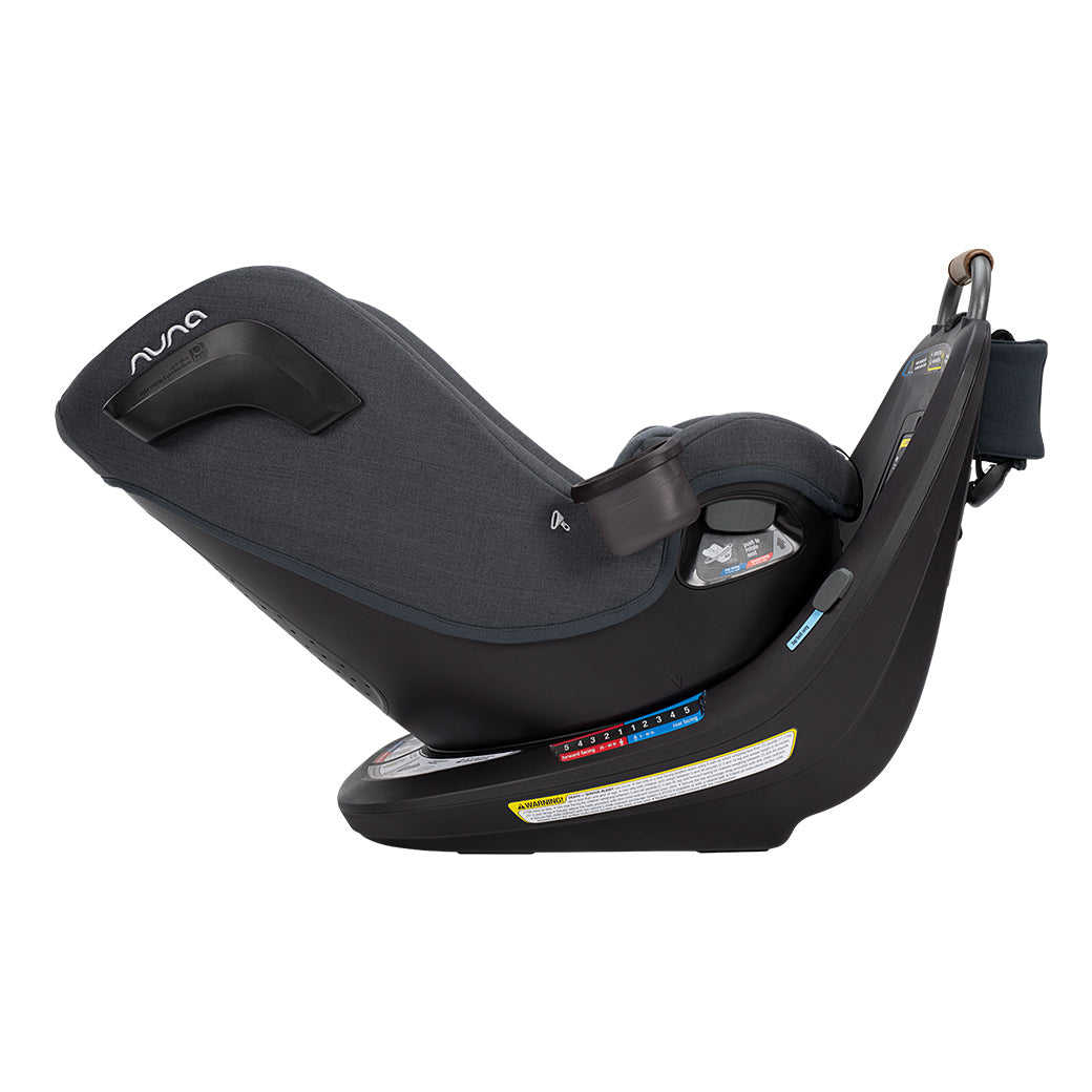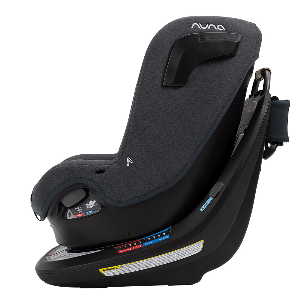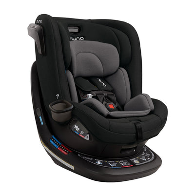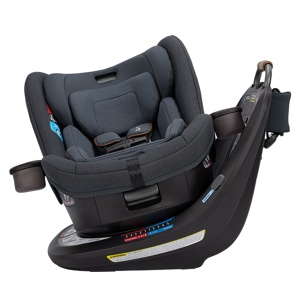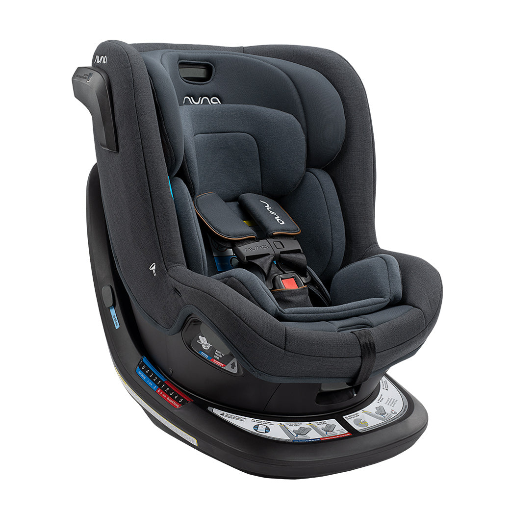 The Nuna REVV rotating convertible car seat is ready to revolutionize your travel experience. One simple install then rotate the seat 360° effortlessly for a stress-free easy-in, easy-out between adventures. The sleek lines provide a stylish look for you, while the luxurious fabrics and ventilation provide a comfortable ride for them. REVV provides security with Steel Strength Technology™, Aeroflex™ side impact protection, and ten-position, bubble-free recline for snug and secure comfort. REVV is the stress-free rotating seat of your dreams.