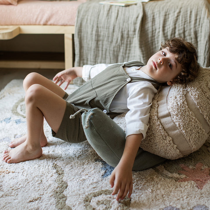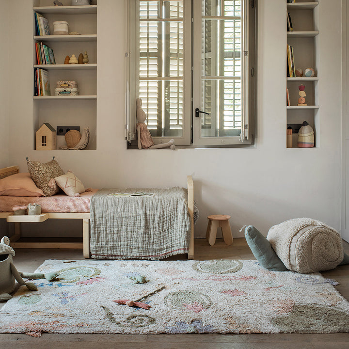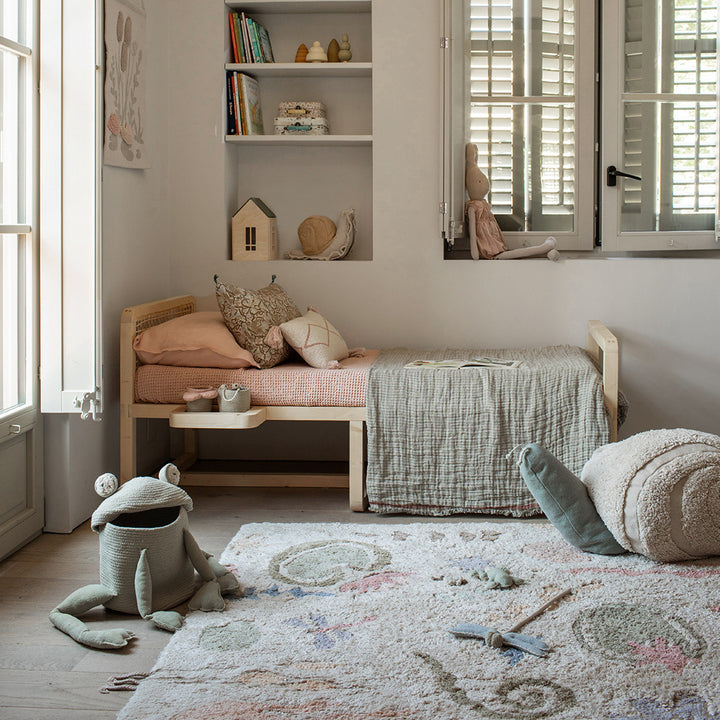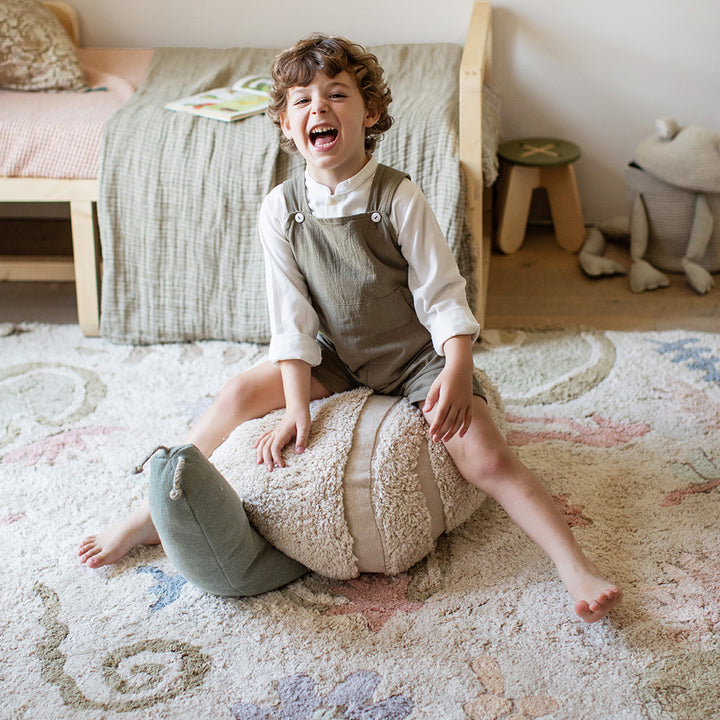 Add a touch of nature to your kiddo's room with Lorena Canals' Mr. Snail Pouf! Mr. Snail serves as an adorable seating option during playtime, or as a convenient leg rest. The Mr. Snail Pouf will be your kiddo's new best friend!