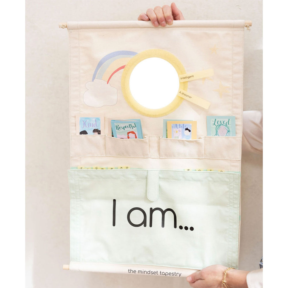 The Mindset Tapestry helps children develop emotional intelligence and self-confidence through a 5-minute daily routine of positive affirmations. The tapestry teaches kids to be kind, to know their worth, and reminds them that spreading love starts from loving and caring about yourself.