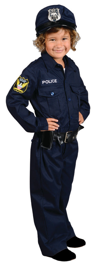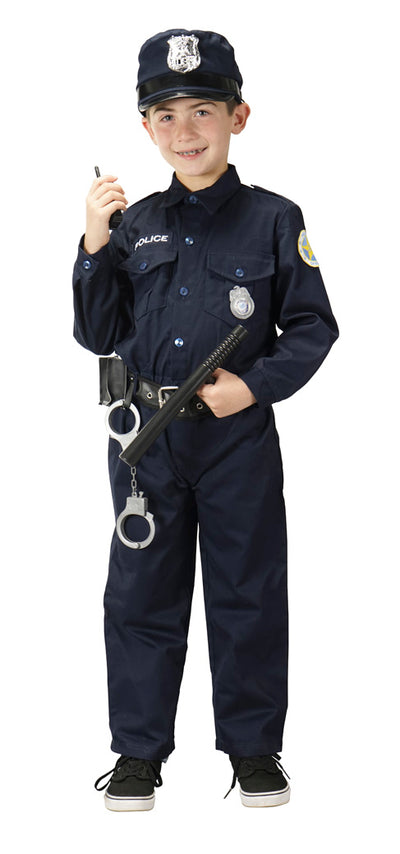 Stop! In The Name Of The Law! This 1 piece outfit has it all from head to toe. Includes: Cap with badge, 1 piece suit with official looking patches and belt.