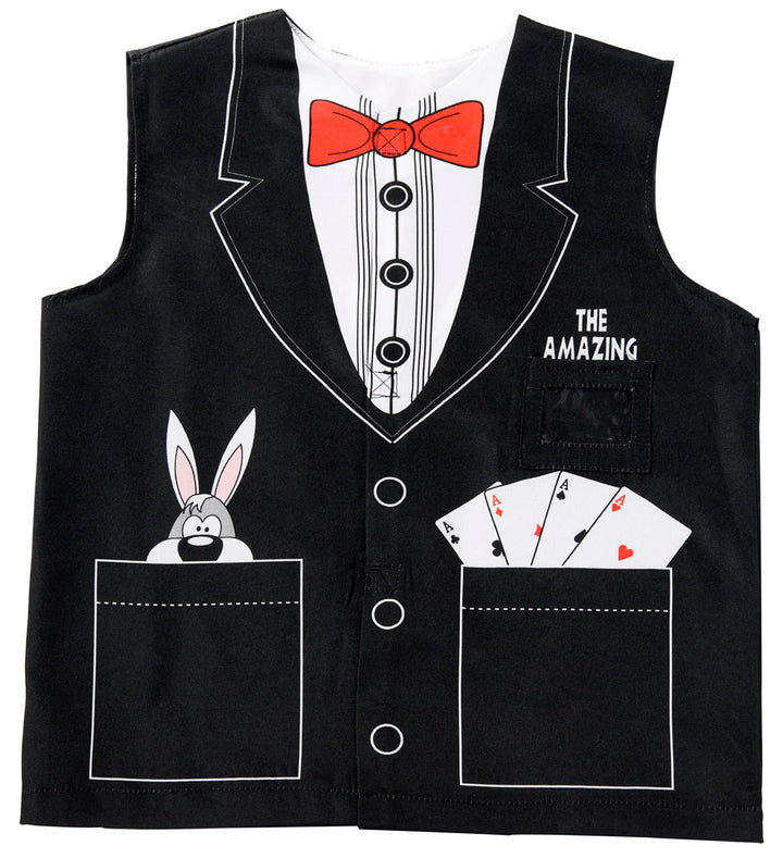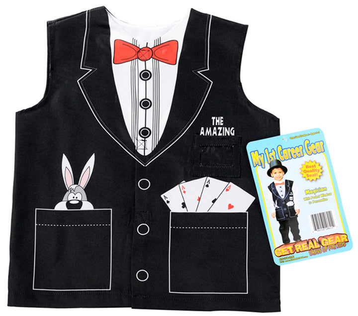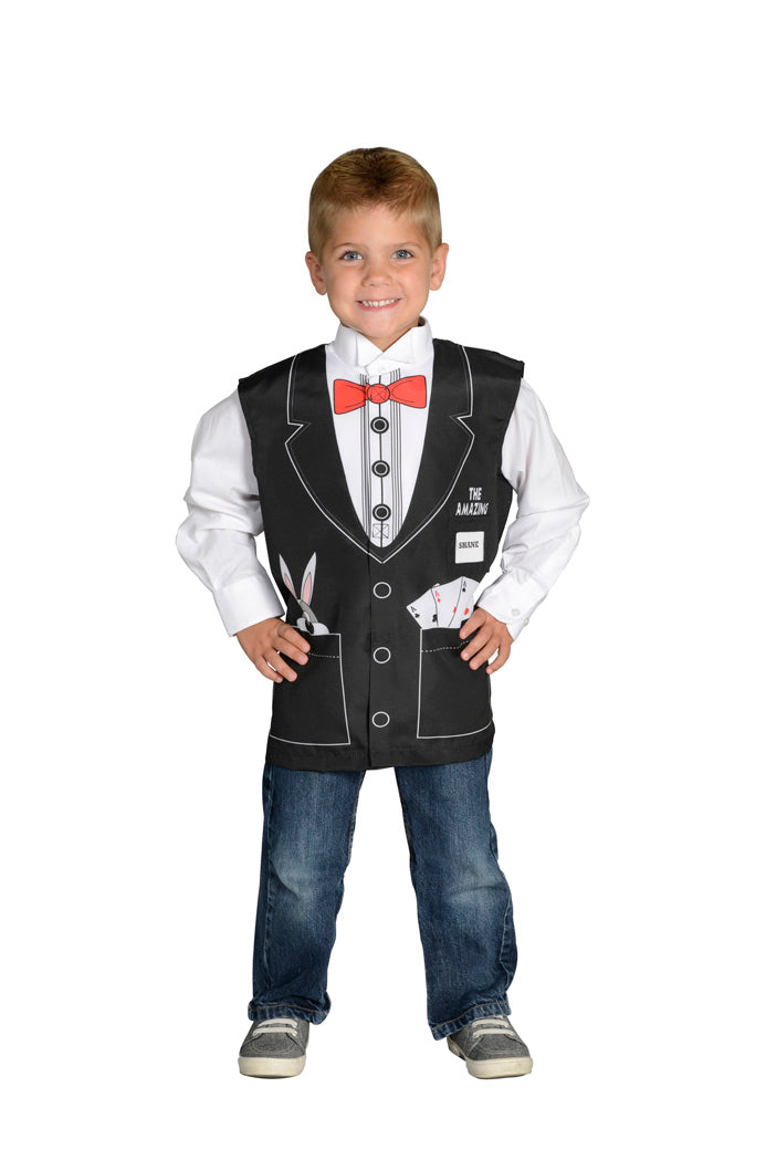 Abracadabra! Now you see it, now you don’t. This vest get’s your little magician ready for their big performance. It’s easy for little ones to put on by themselves, and there’s a clear pocket for their name. Ages 3-6. Foam Top Hat sold Separately.