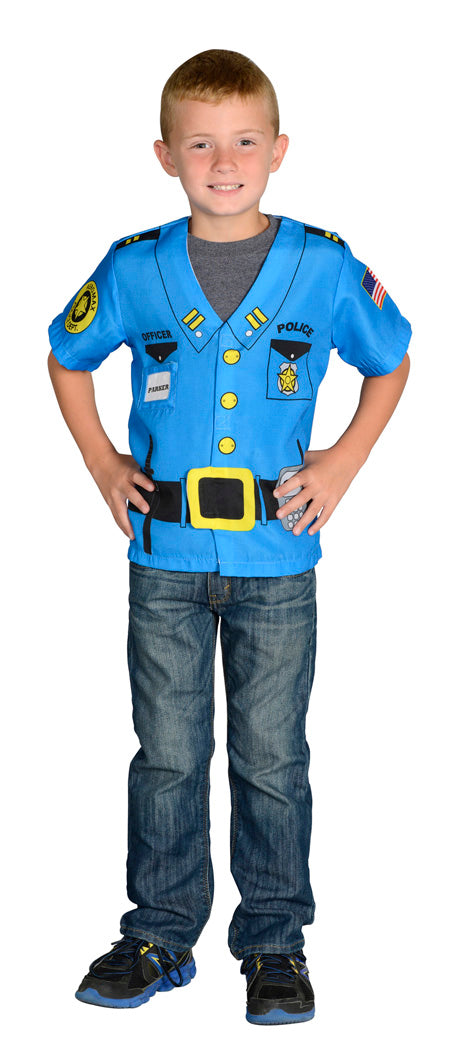 If there's an emergency, this police officer will be ready. This easy on shirt is printed with all the things they'll need: Badge, arm patches and sergeant stripes. It's all in the details. Pocket on chest for personalization. Ages 3-6. Don't forget to pick our great police helmet to complete your look!