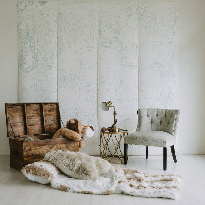 Add some wildlife art to your home by bringing it straight to your kids' walls. The Anewall Animal Kingdom Mural wallpaper is perfect for your little adventurer's den with charming teal illustrations of the jungle's superstars.