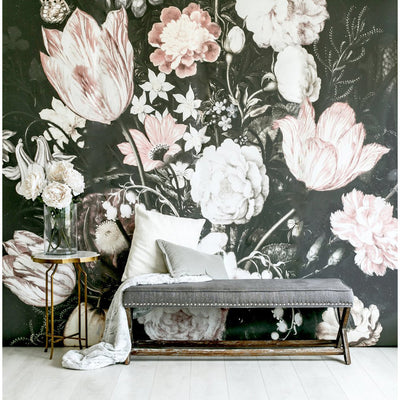 The Blossoms Wallpaper – a dark, elegant twist to your wall. Illustrated in rich, vintage tones, this mural’s foliage beautifully intermingles to create a sophisticated and intricate arrangement. This mural effortlessly combines vintage and modern characteristics, to elevate any home.