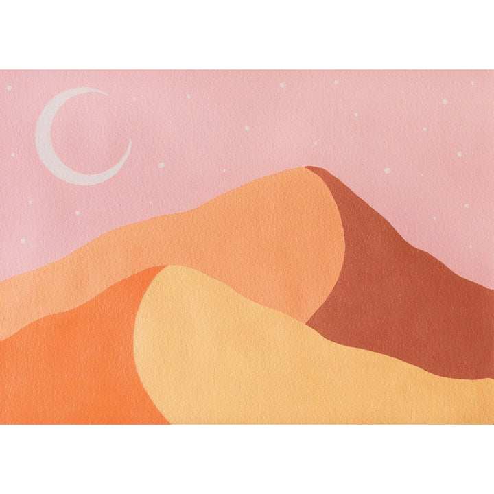 Baby pink skies, golden sand dunes, and this gentle crescent moon will bring your home the most serene glow. A soft yet bold statement that contains the sweetest shades for your little one's nursery or bedroom. Not only easy on the eyes but easy to pair with neutrals, anything wooden or woven, and some beautiful linens.