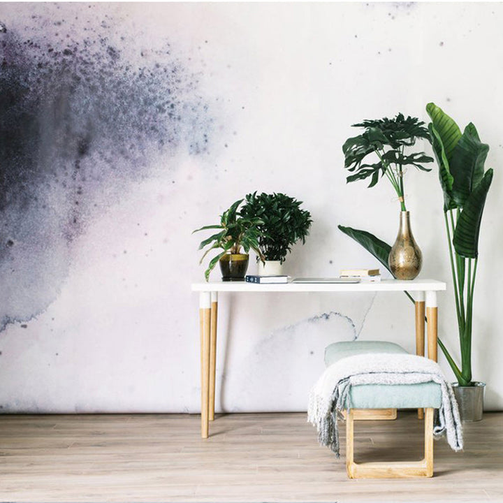 Anewall's Eau Noire Mural features a contemporary hand painted, ink drop wallpaper mural. The French translation for "Eau Noire" is black water.