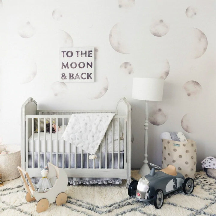 Anewall features the perfect moon and stars nursery wallpaper. Created in collaboration with Caitlin Lindquist from Dash of Darling for her baby daughter, Luna.
