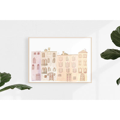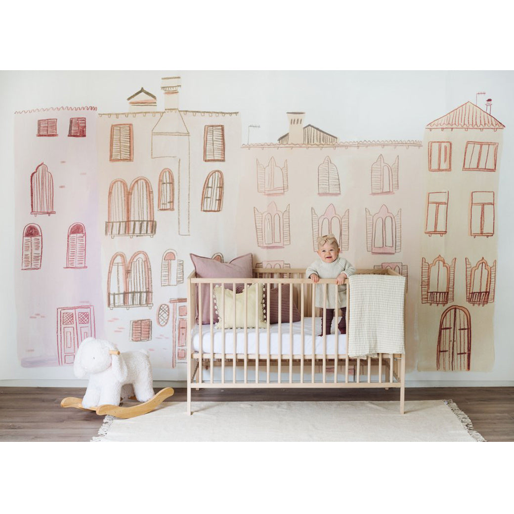 Stroll alongside the bohemian, city streets of France all within your home. We guarantee that these peachy, flat-top buildings will transport you straight to the Mediterranean seaside. Whether you are looking for a nursery, bedroom, or playroom wallpaper, our Medina Mural will bring a perfect touch of balmy color and charm to any space.