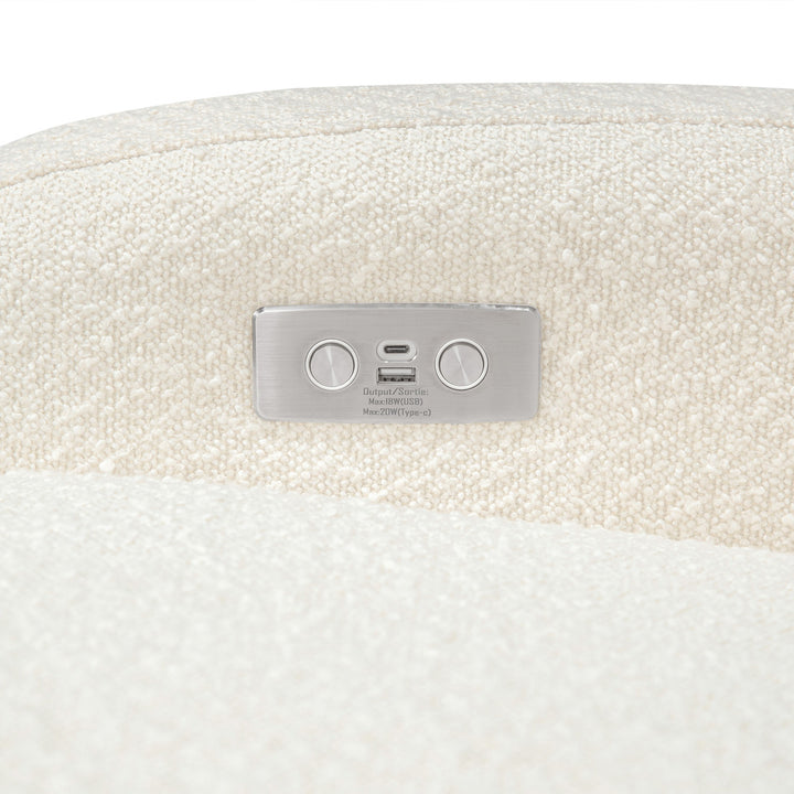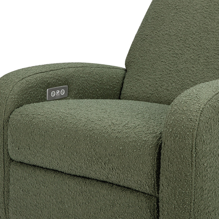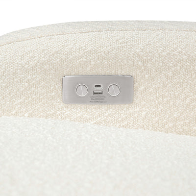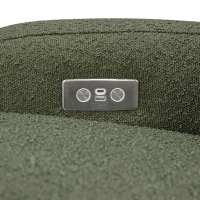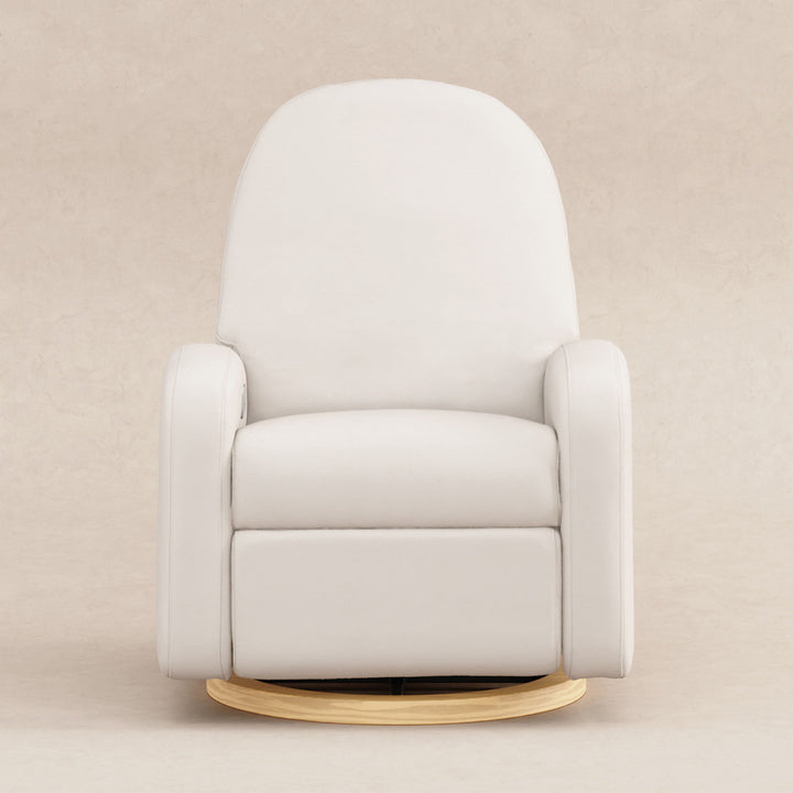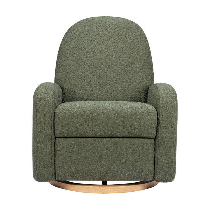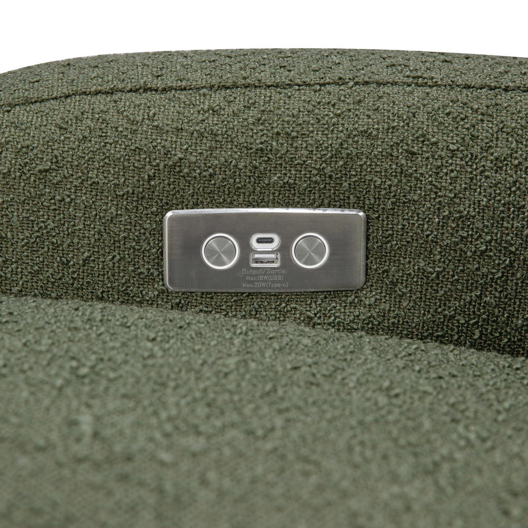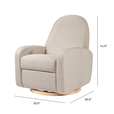 The Nami Electronic Glider Recliner is an elevated nursery accent piece that’s both playful and comfortable with its round and friendly silhouette. The oversized, organic proportions, coupled with its natural wood base, fit into a soft and modern palette. Rest and recharge in this recliner with its built-in USB port, smooth swivel motion, and effortless back and forth gliding. Lean back and relax at the touch of a button with this recliner's quiet electronic control button. Pair with Naka or Enoki Storage Ottoman to complete the look.