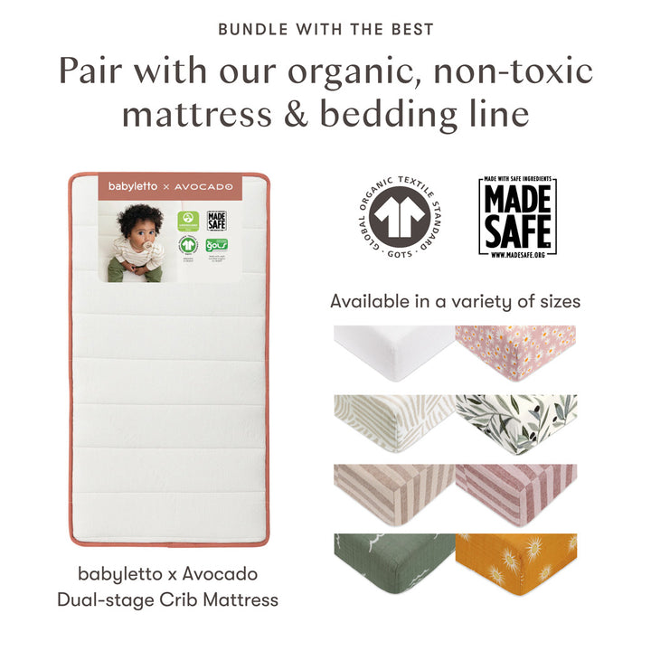 UNIVERSAL MATTRESS FIT: The Scoot is a standard size crib, we recommend our Pure by babyletto line of hypoallergenic and eco-conscious crib mattresses.