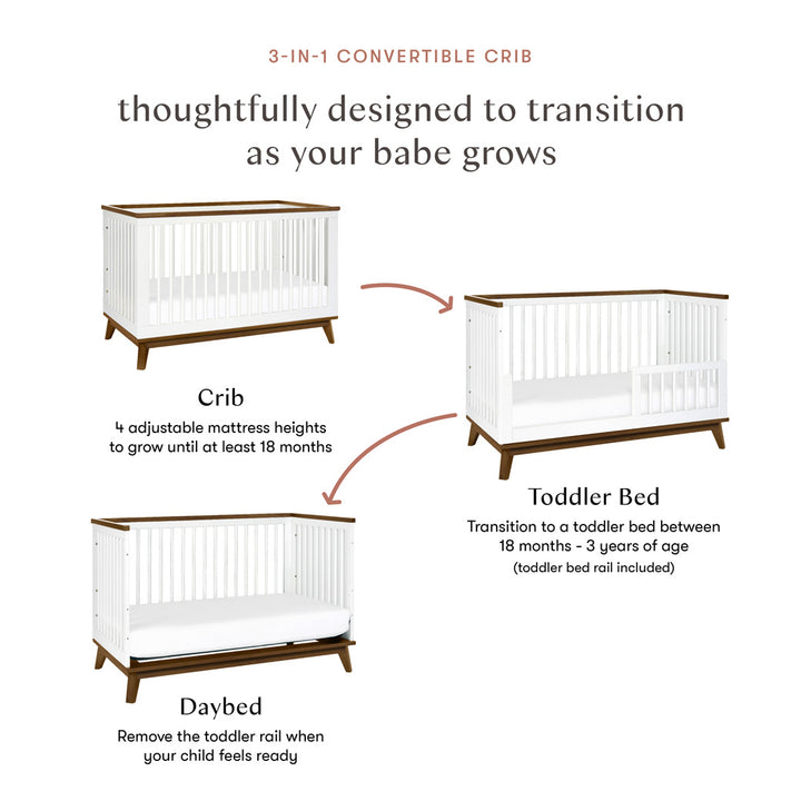 3-IN-1 CONVERTIBILITY: Easily transitions as your babe grows from crib to toddler bed and daybed, with an included toddler bed conversion kit for your convenience. Suitable from newborn up to 4 years old.