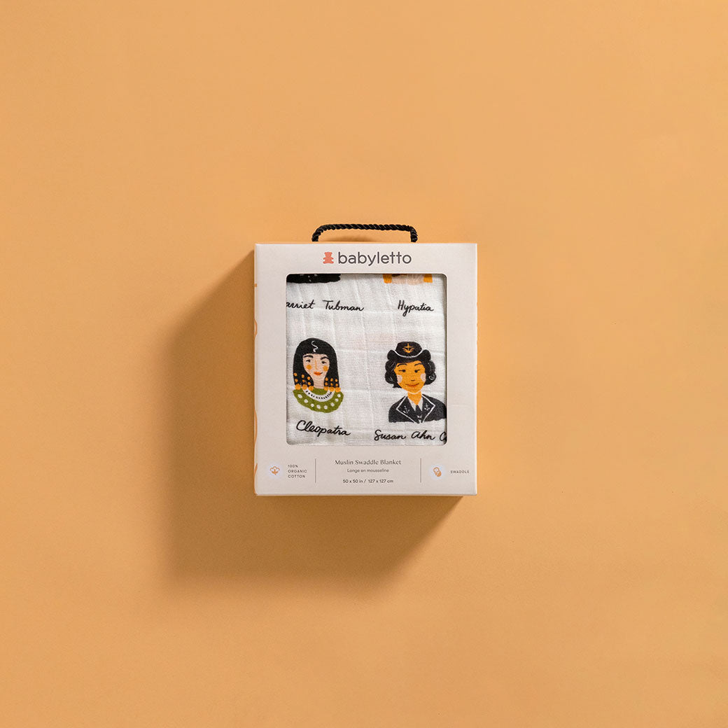 Babyletto's Swaddle in GOTS Certified Organic Muslin Cotton is consciously crafted from breathable and soft fabric to keep babe cozy and warm. Designed to educate and inspire a future generation, Babyletto's Women in History collection features fascinating individuals with accomplishments in art, science, military, exploration, athletics and more. The swaddles are consciously crafted from breathable and soft GOTS-certified organic muslin cotton to keep babe cozy and warm.