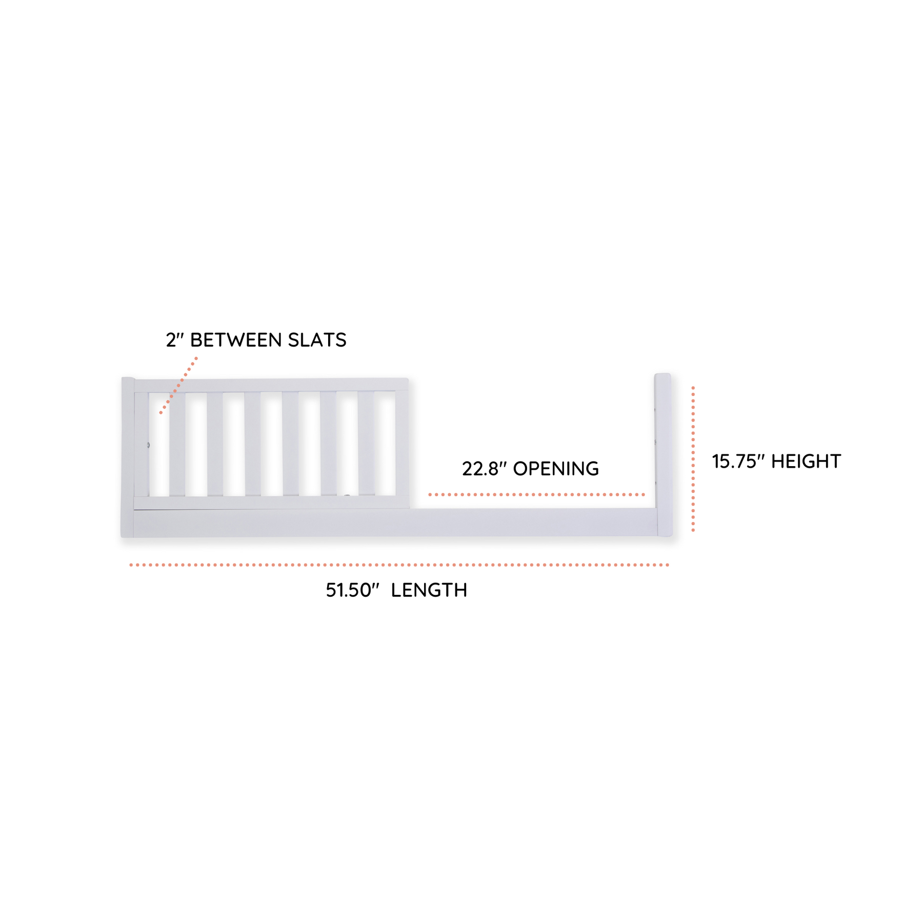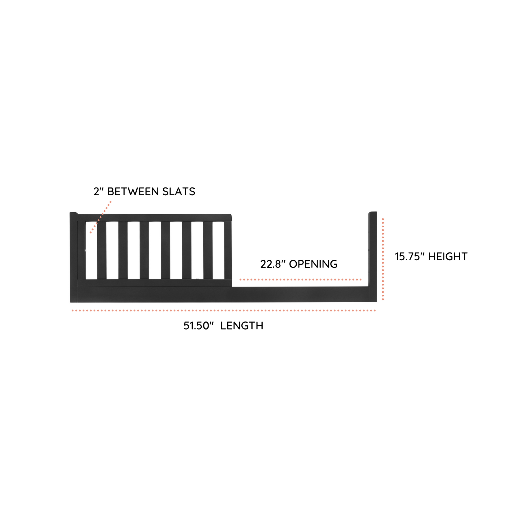 • Bed rail dimensions: 51.5" L x 1.2" W x 15.75" H