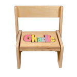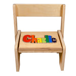 It's a chair, it's a stool, it's the Hollow Woodworks' Flip Stool! An adorable 2-in-1 chair with your kiddo's name in removable letters form a fun puzzle, enabling your child to feel each letter of their name and learn how to spell it. Whether they need extra help climbing to reach their favorite toy, or want to rest and relax for a bit, this flip stool has their back!