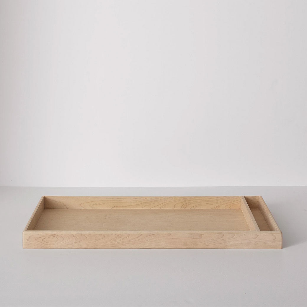 Turn your Kalon Caravan dresser into a convenient changing station with the Kalon Changing Tray! The tray is made from Maple, Oak, or Walnut, and finished with Kalon Bare Finish, a premium organic oil/wax finish developed to preserve the beauty of raw wood. With a side compartment, there is plenty of storage for all your little one's changing essentials.