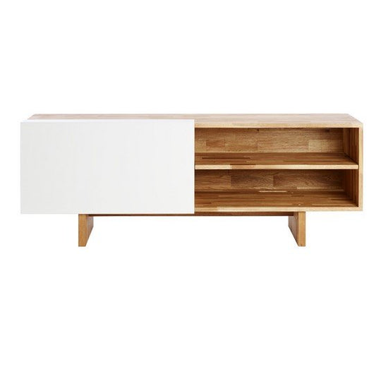 The LAXSeries Entertainment Shelf in White was designed to house all your media equipment neatly behind a beautiful, white aluminum sliding panel. With two adjustable shelves and accommodation for cables, this console is the perfect choice to brighten up your modern space.