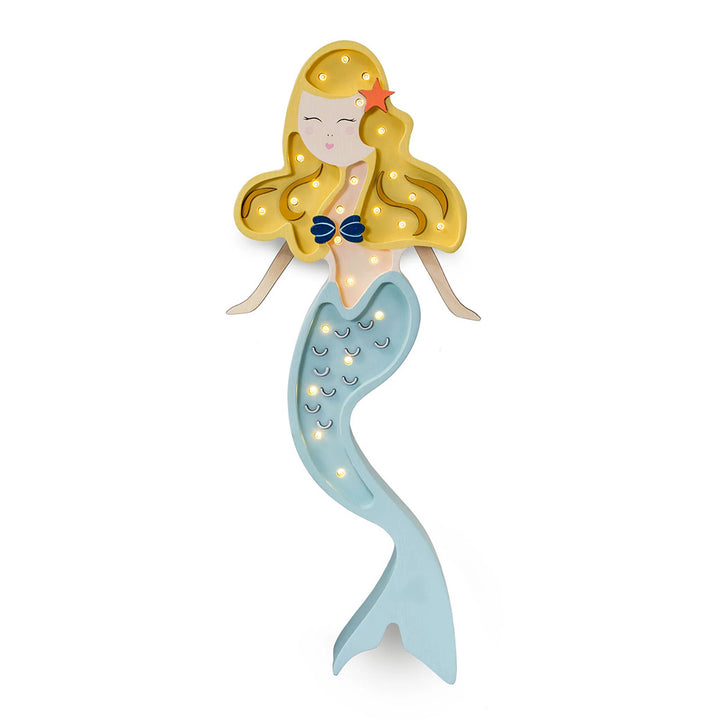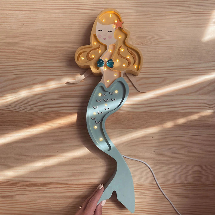Let's go under the sea with the Mermaid Lamp by Little Lights! This lamp is perfect for any little one who dreams of adventures and fantasies. Handcrafted out of 100% natural pinewood, it is durable and strong and your little one will be happy as a clam!
