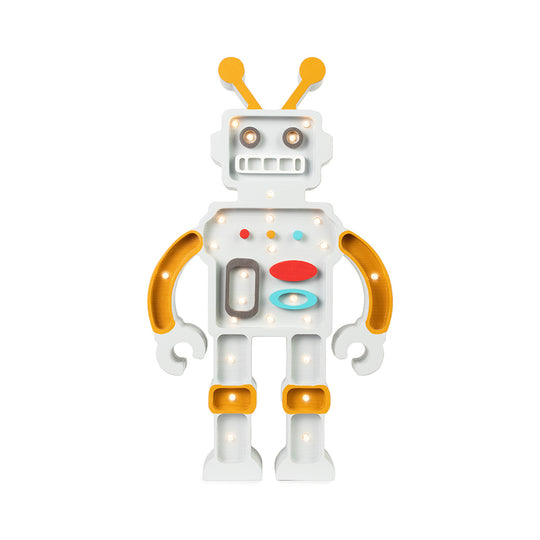 This high-quality children's night light is handmade from 100% natural pinewood, making it as strong and durable as it is beautiful. Our Little Lights Robot Lamp is a loveable automaton programmed to light the way towards rest and relaxation. Order now to give your little engineer their first futuristic friend!