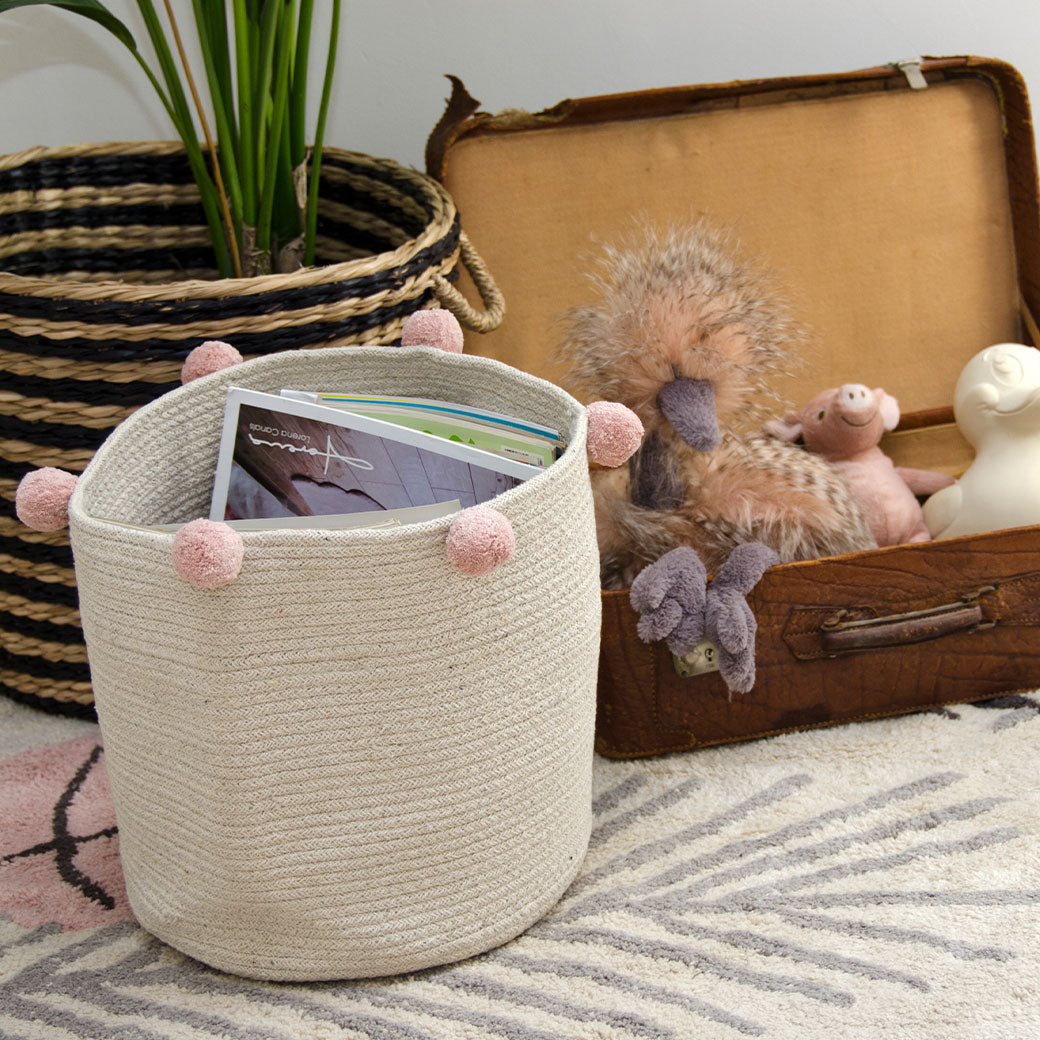 The Lorena Canals Bubbly Natural Baby Basket is very practical for storing toys or books, not to mention a very trendy piece for the living room, dining room, or any other room of the house. The basket is made with braided cotton and decorated with 6 cute and fluffy pompoms! The Bubbly Natural Baby Basket by Lorena Canals is handmade with love and family in mind and can be mixed and matched with a variety of styles!