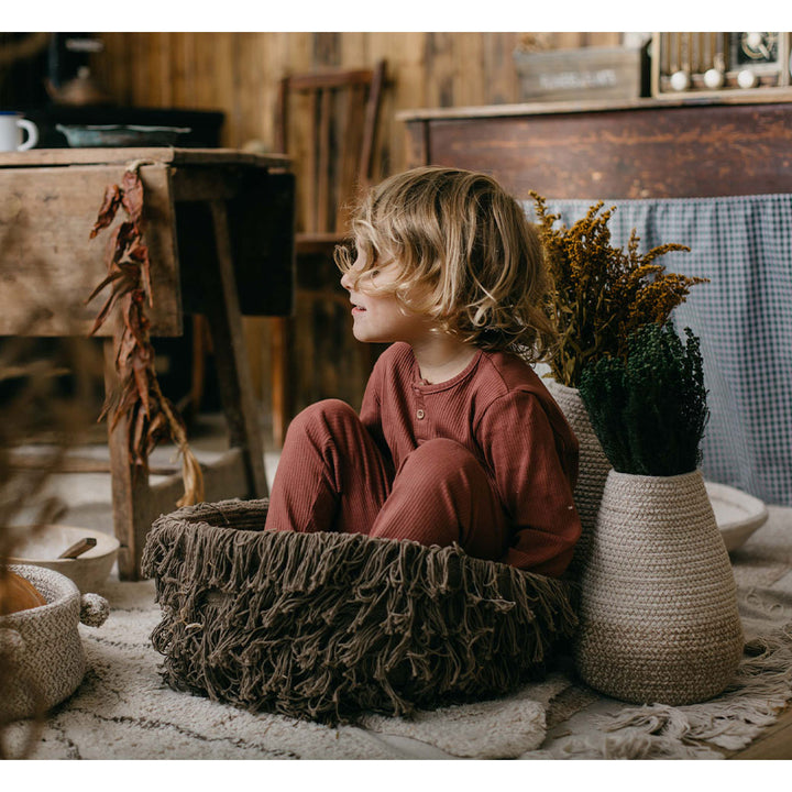 A crisp, sunny morning is the perfect time to take to the woods for a mushroom hunt! Almost like a toy and a 2-in-1, these baskets can be used either together or separately. The Baby Mushroom Basket by Lorena Canals is handmade from natural, undyed cotton melange cords with contrasting linen-color stitching. You can combine it with its larger version, the Mama Mushroom Basket!