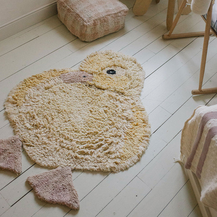 The Ducky Washable Animal Rug by Lorena Canals will wobble your way into your heart with its cute design and soft colors. Ducky is adorned with short and high piles made from natural fibers and non-toxic dyes that give texture and make Ducky the best rug in the flock! The Ducky Washable Animal Rug by Lorena Canals is machine washable so all the stains will easily roll off like water off a duck's back.