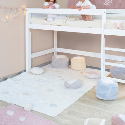 The Kim Washable Rug by Lorena Canals is a beautifully handmade addition to your little one's room that is ideal for playtime and sleepovers! This cute cotton rug has a whimsical design that is inspired by creativity and imagination! It is easy to mix and match with other furniture and it brings a fun and playful atmosphere to the room! The Kim Washable Rug by Lorena Canals is made from natural cotton and non-toxic dyes so it is not only comfortable but sound and safe!