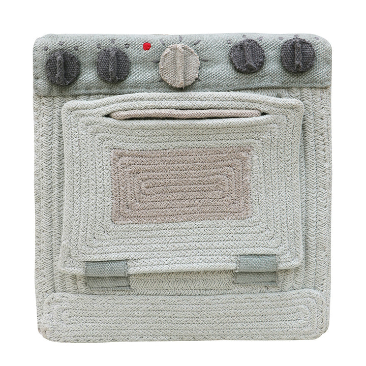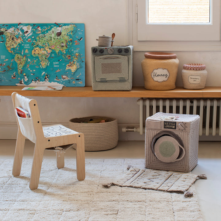 Do you have a little chef in your family? Presenting the Kitchen Play Basket by Lorena Canals! While so much more than a basket, this 100% handcrafted textile play kitchen imitates a traditional gas stove and comes with a small pot in braided RugCycled cord and quilted oven glove for the ultimate kitchen playtime experience! The Kitchen Play Basket by Lorena Canals will inspire your little cook to be creative and create delicious play-pretend dishes!