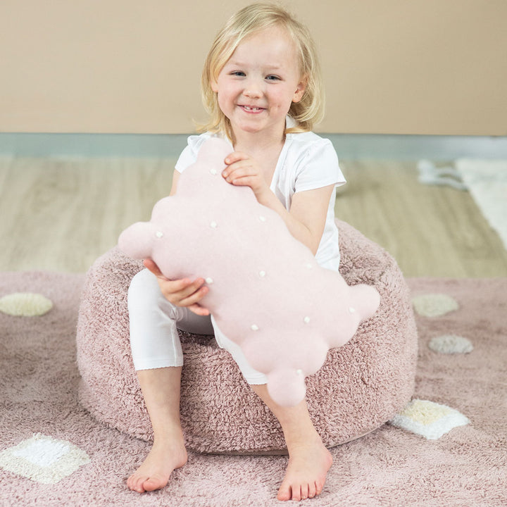 The Biscuit Knitted Cushion by Lorena Canals is a washable knitted cushion shaped as a rectangular biscuit with rounded edges. Due to its originality and soft Ivory color, this piece is perfect for nurseries and kids' rooms, for both girls and boys. You can wash the Biscuit Knitted Cushion by Lorena Canals directly in your washing machine, without taking out the filler!