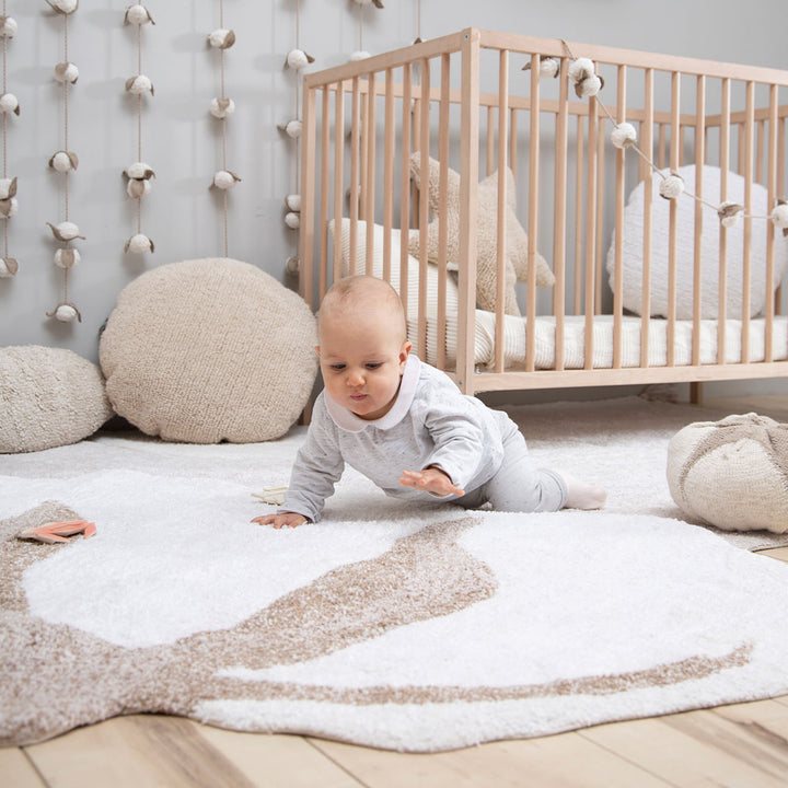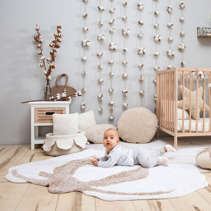 The Cotton Flower Washable Rug by Lorena Canals is the best tribute that Lorena Canals could make to this material, which she has been working on for more than 20 years. Thanks to its versatility, its softness, and the different textures, this rug transports us to the endless cotton fields.