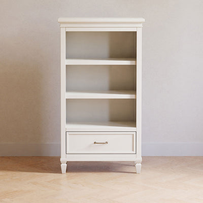 The Namesake Darlington Bookcase in Warm White is a classic French country-inspired storage solution for the home. The elegant bookcase features two open and adjustable shelves for displaying your child’s many books and treasures; customize and style it as baby grows into a toddler. With its classic raised molding, delicate feet detailing, and satin nickel accent drawer pull, the Darlington is an effortless piece to incorporate within the home.