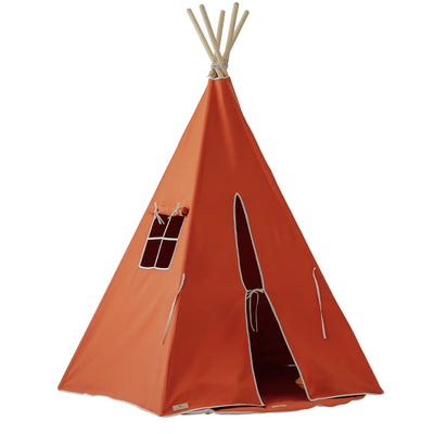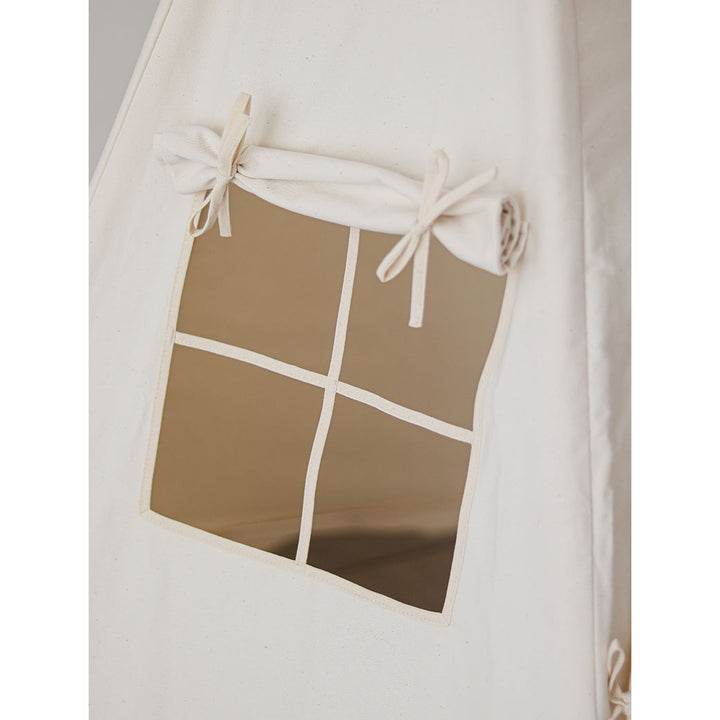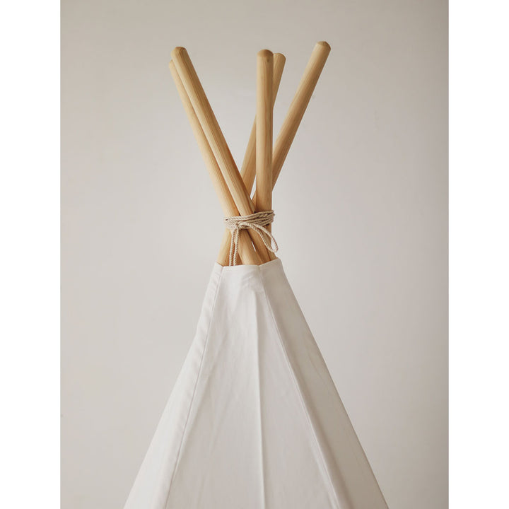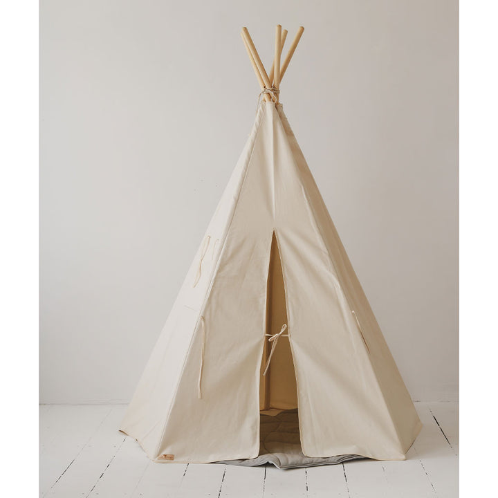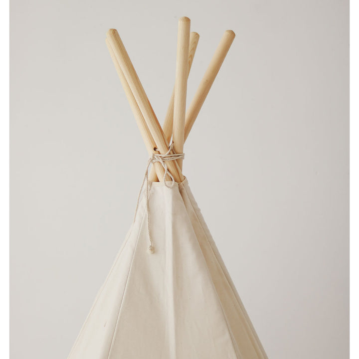 The Cotton Teepee Tent by Moi Mili is made of natural materials; 100% cotton fabric and pine poles. Thanks to its five-wall structure, the tent is extremely stable. The set includes the teepee, poles, and a cotton cover.