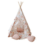 Perfect for epic outdoor adventures or rainy-day indoor playdates, the adorable Teepee Tent with Pattern and Mat Set by Moi Mili gives kids a peaceful place to hide out and let their imaginations run wild. This teepee is made of natural materials; 100% cotton fabric and pine poles. Thanks to its five-wall structure, the Teepee Tent with Pattern and Mat Set by Moi Mili is extremely stable. The set includes the teepee, poles, cotton cover, and mat. The fluffy mat is durable and filled with a thick insulation lining.
