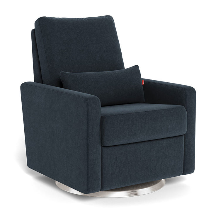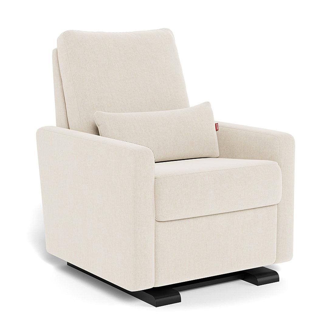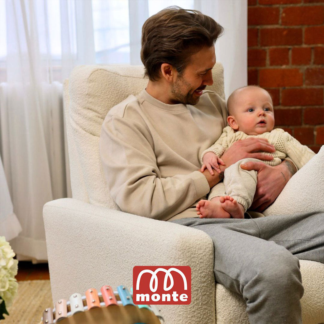 The Monte Matera Glider Recliner is a perfect blend of two of our favorite Monte Design chairs. The profile of the Grano, paired with the soft cushioning of the Como, together created a chair that is modern and sleek in design and exceptional in coziness and comfort. Soothing time is made easy for both parent and the baby, with a smooth glide, included lumbar pillow, and ergonomic armrests.