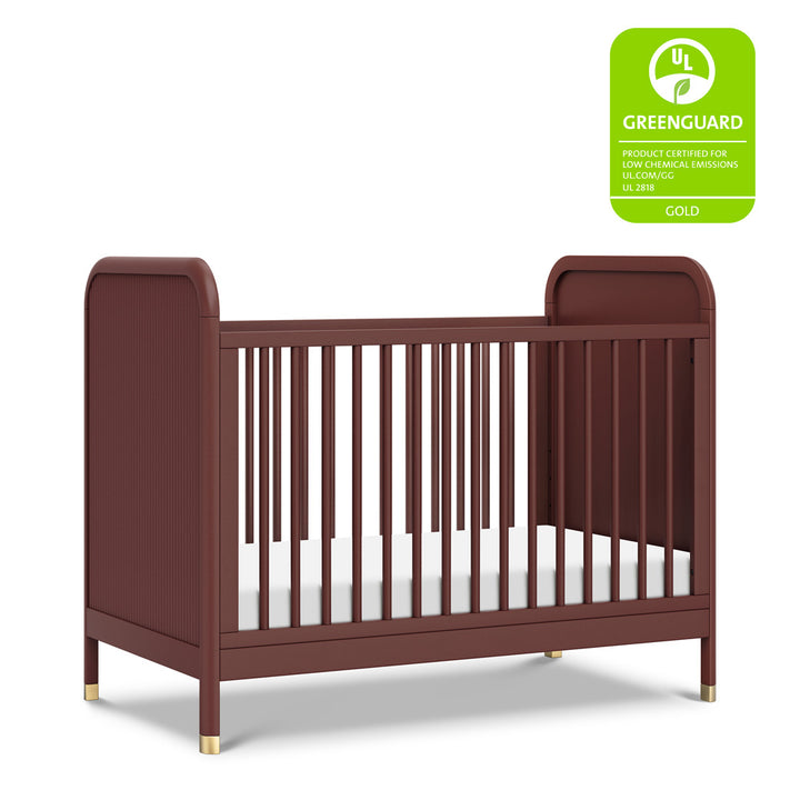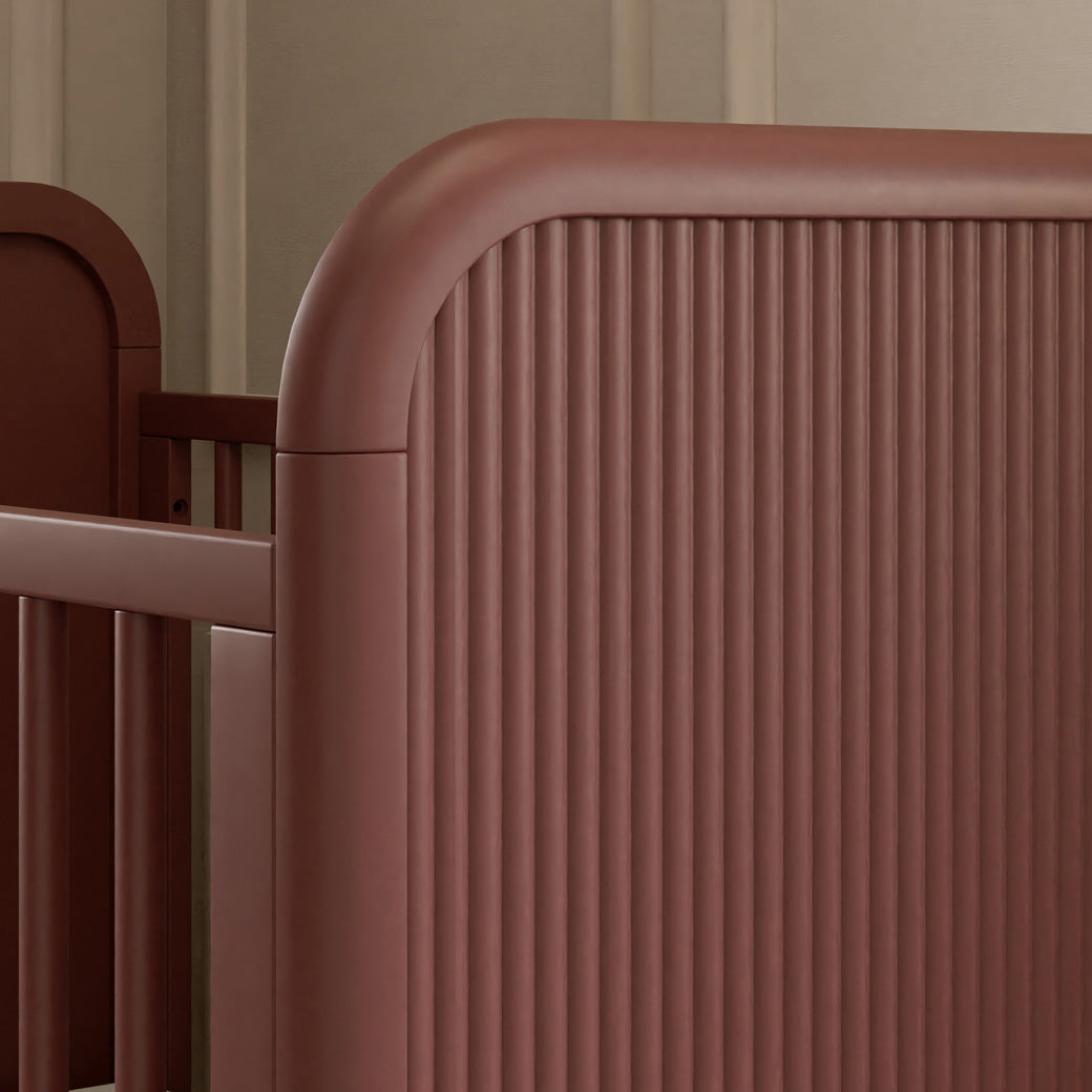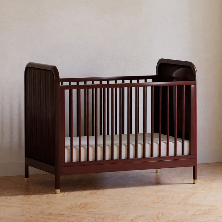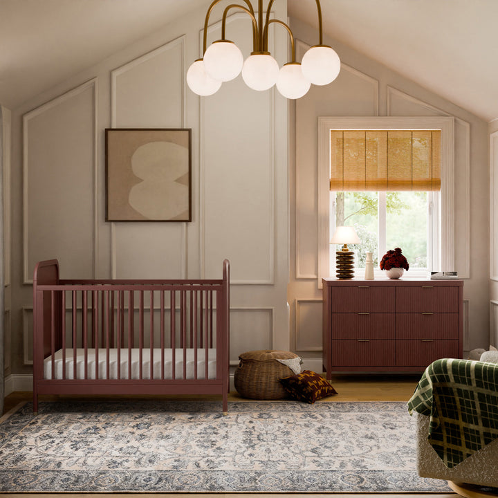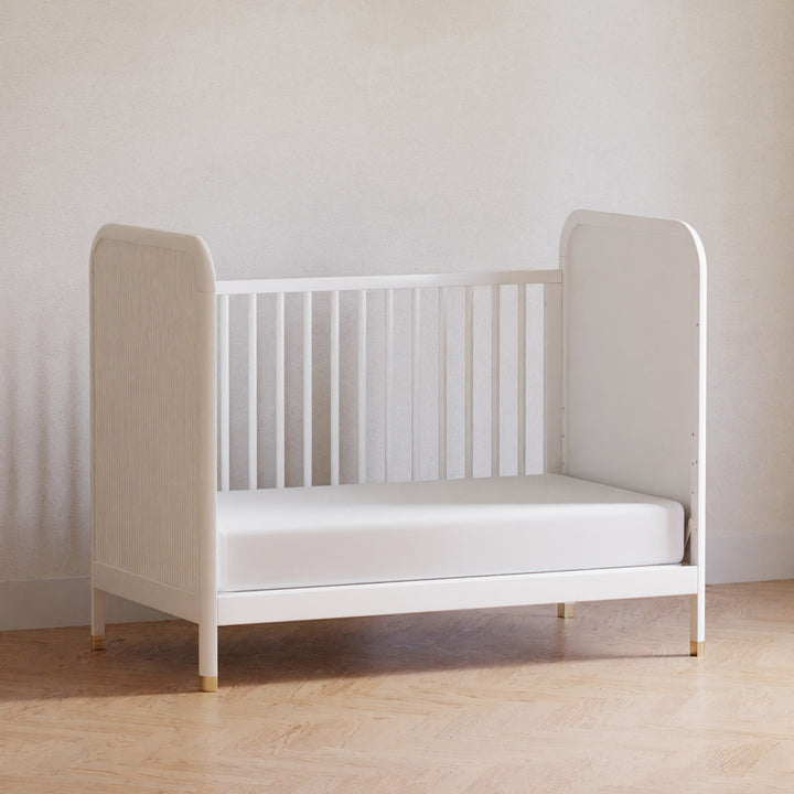 The Brimsley Tambour 3-in-1 Convertible Crib by Namesake is a masterpiece of craftsmanship that blends timeless design with modern functionality. Its distinctive tambour design and gently curved slats, paired with elegant gold feet, make this crib more than just a place for your little one to rest; the Brimsley Tambour 3-in-1 Convertible Crib by Namesake is a statement piece that elevates the aesthetic of your nursery.