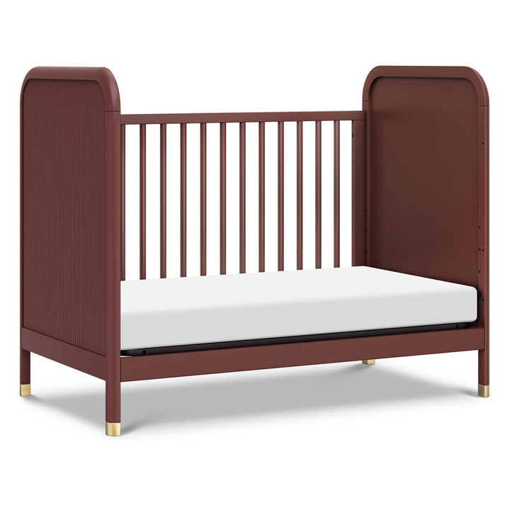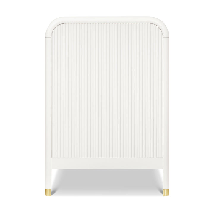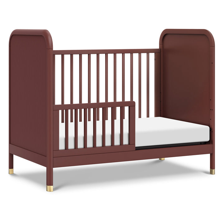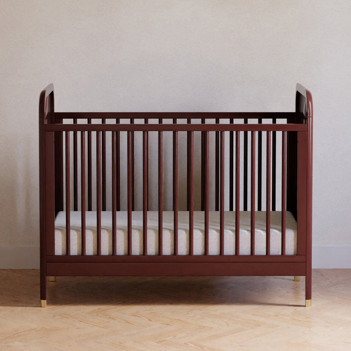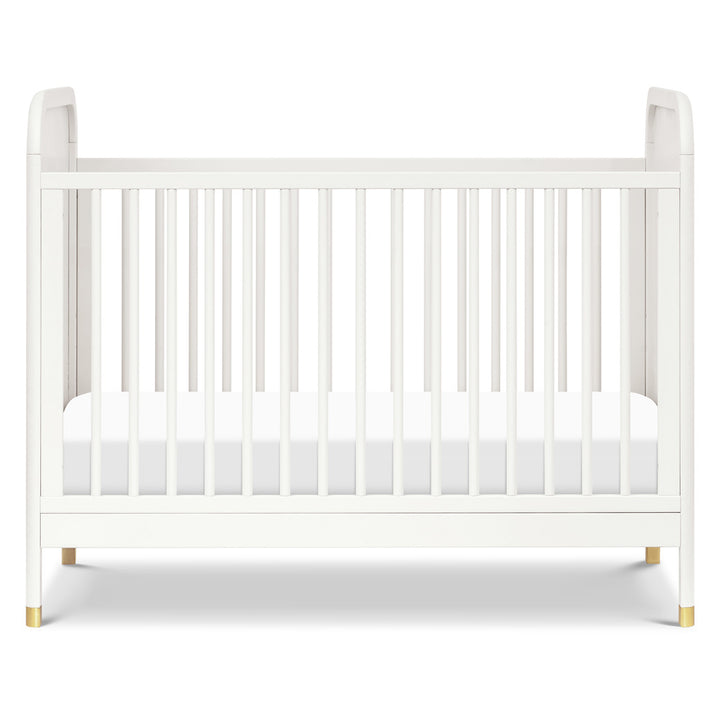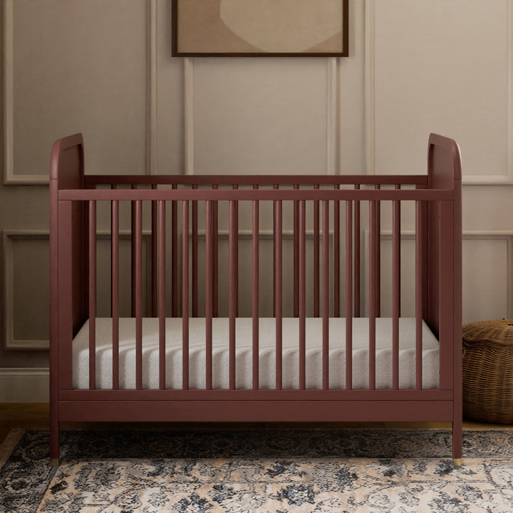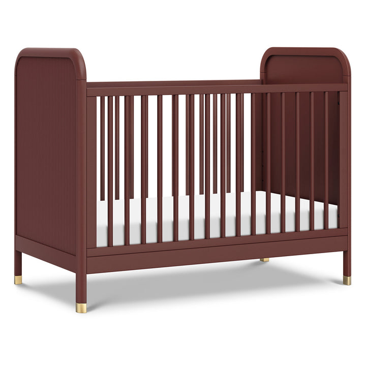 The Brimsley Tambour 3-in-1 Convertible Crib by Namesake is a masterpiece of craftsmanship that blends timeless design with modern functionality. Its distinctive tambour design and gently curved slats, paired with elegant gold feet, make this crib more than just a place for your little one to rest; the Brimsley Tambour 3-in-1 Convertible Crib by Namesake is a statement piece that elevates the aesthetic of your nursery.