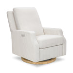 The Namesake Crewe Electronic Recliner & Swivel Glider blends form and function with its crisp, contemporary design and comfortable seat. Its smooth, back-and-forth gliding motion helps you rock your baby to sleep with ease, while the plush back cushion, electronic recline mechanism, and convenient swivel create an inviting repose for both you and your baby.