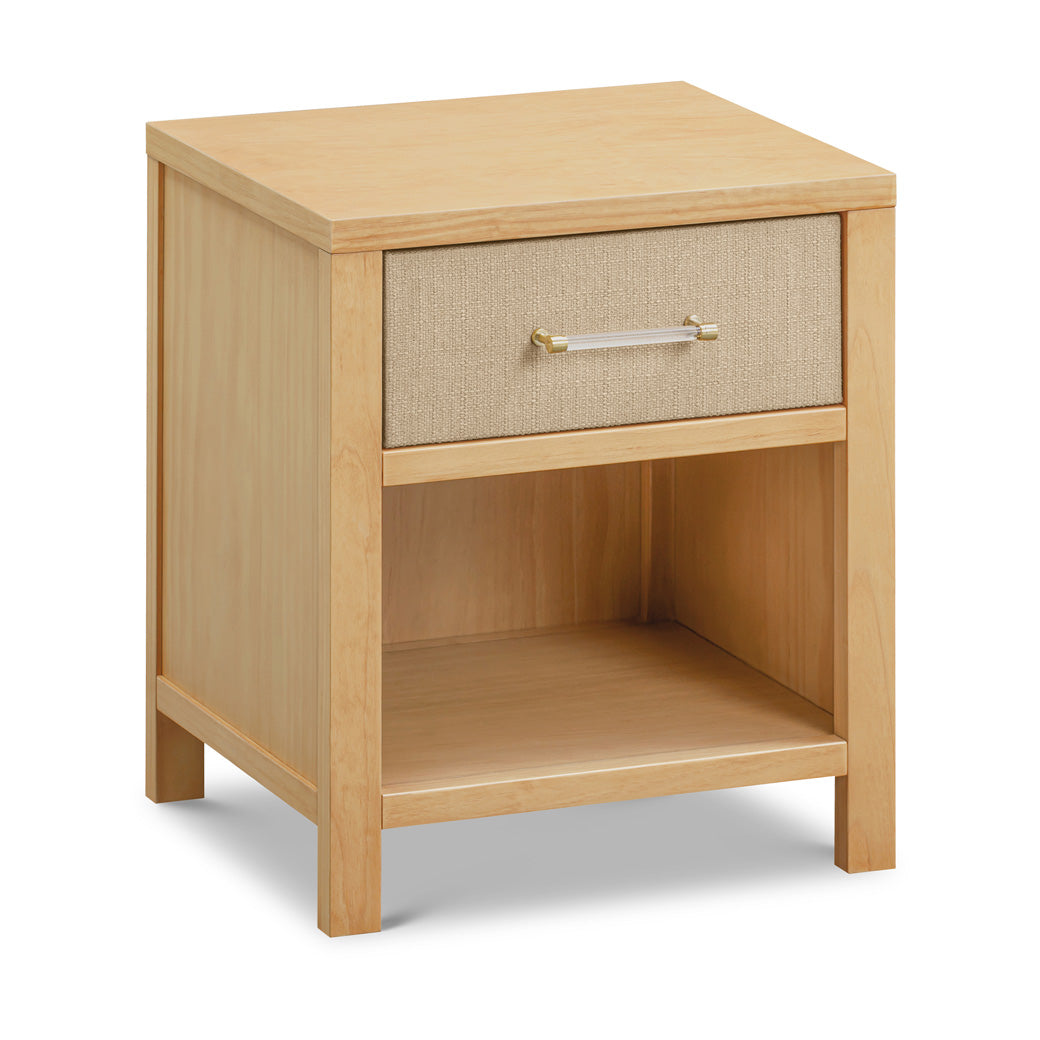 Crafted from quality materials, the transitional Eloise Assembled Nightstand by Babyletto offers timeless style and everyday function. A smooth-glide drawer with a classic handle keeps essentials tucked away, while the open shelf is perfect for books or decor. The combination of wood and fabric of the Eloise Assembled Nightstand by Babyletto add warmth and character to any bedroom.
