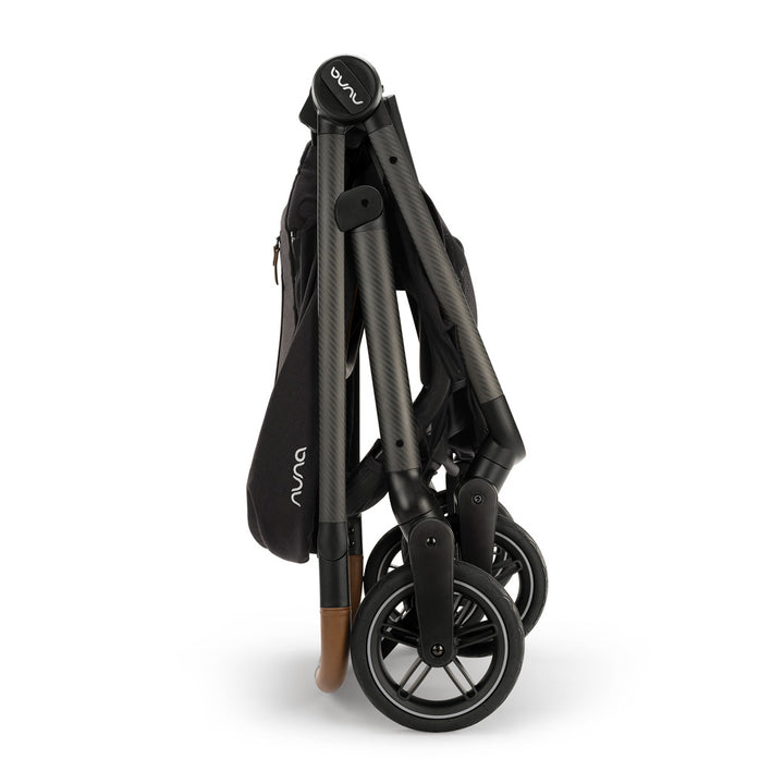 - Folding ring adapter with handle integrates into the stroller for a more compact 1-handed fold that stands on its own