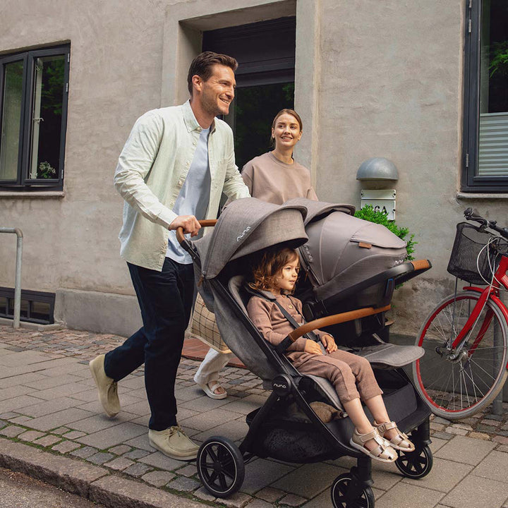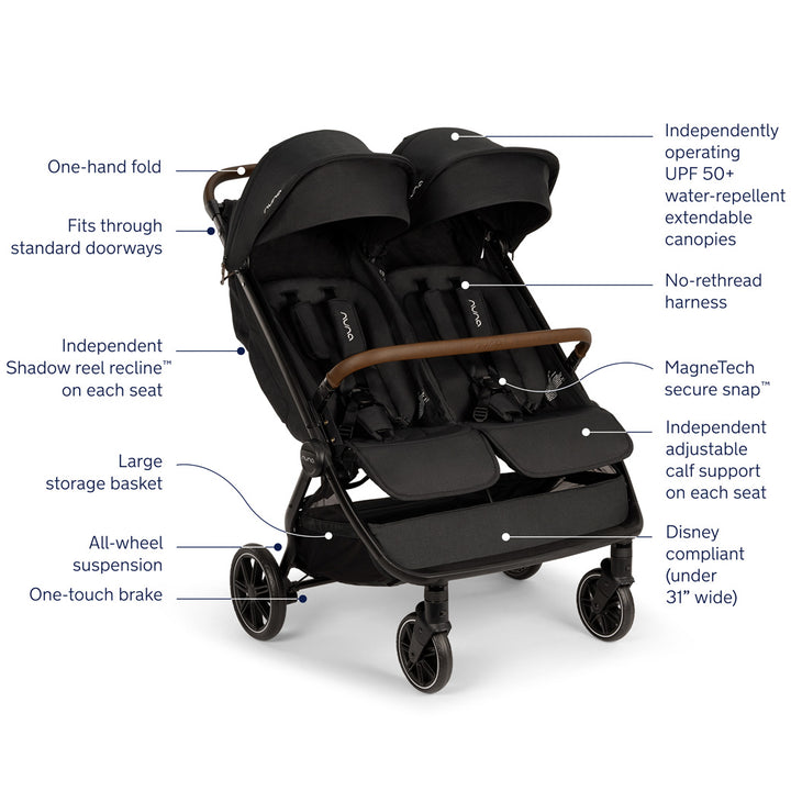Meet your new superpower, the TRVL Dubl Stroller by Nuna. This side-by-side double stroller becomes your lifeline, easily integrating into the multiplying demands of your day. The TRVL Dubl Stroller by Nuna glides through doorways, navigates narrow spaces, and brings your two little explorers closer together for the journey.