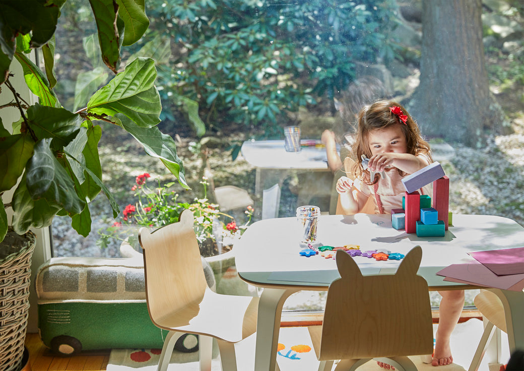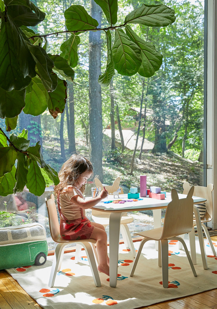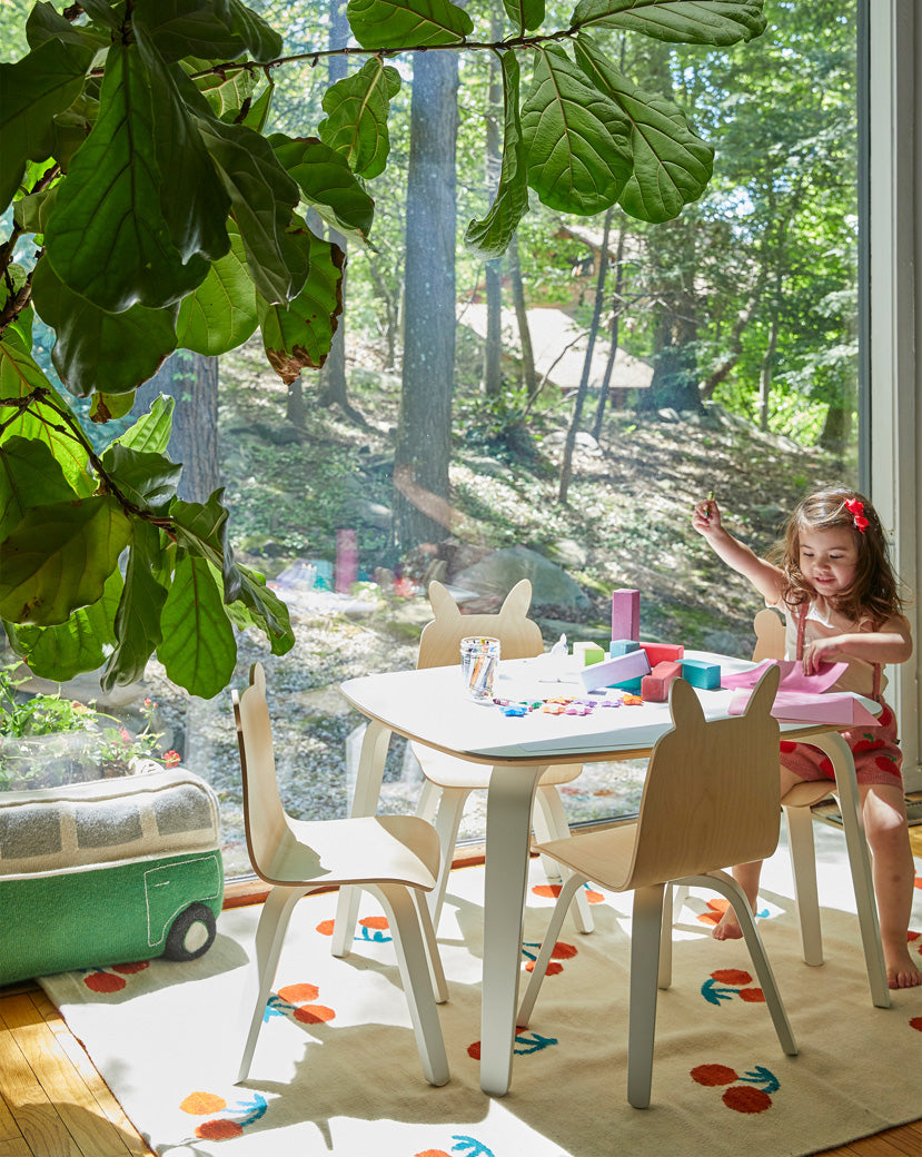 These adorable rabbit-ear chairs in Walnut finish are a fun addition to the play room or kitchen that your kids will love. Oeuf’s strong Baltic birch bent plywood has a clean modern aesthetic that will last as your children grows. Optional delightful fabric stickers (sold separately) will inspire kids to personalize them with eyes, mouths, and accessories. These whimsical animal chairs go perfectly with the table as a set and are simple in style but still modern and inventive. These fun-sized chairs are durable and easy to clean, making them the perfect addition to your play room or kitchen.